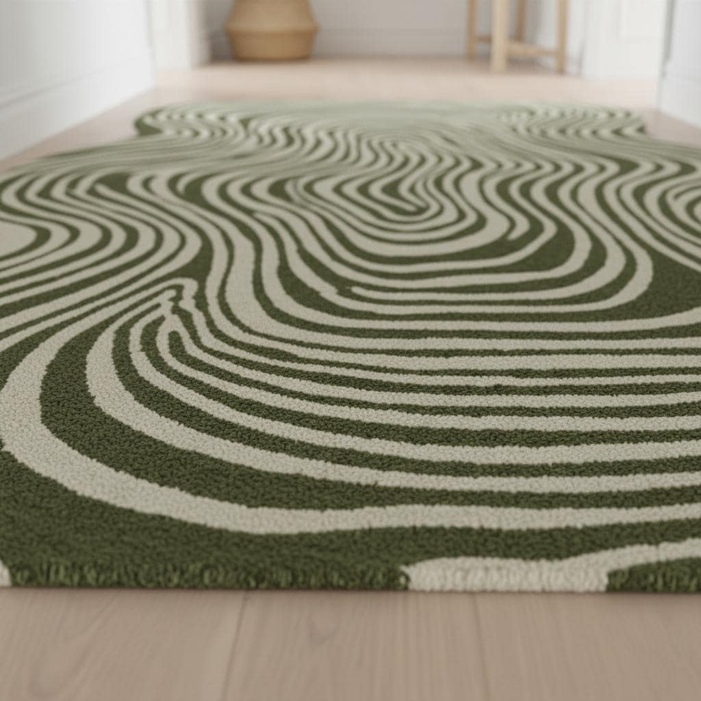 Hand Tufted Wavy Wool Rug – Green Abstract Modern Carpet