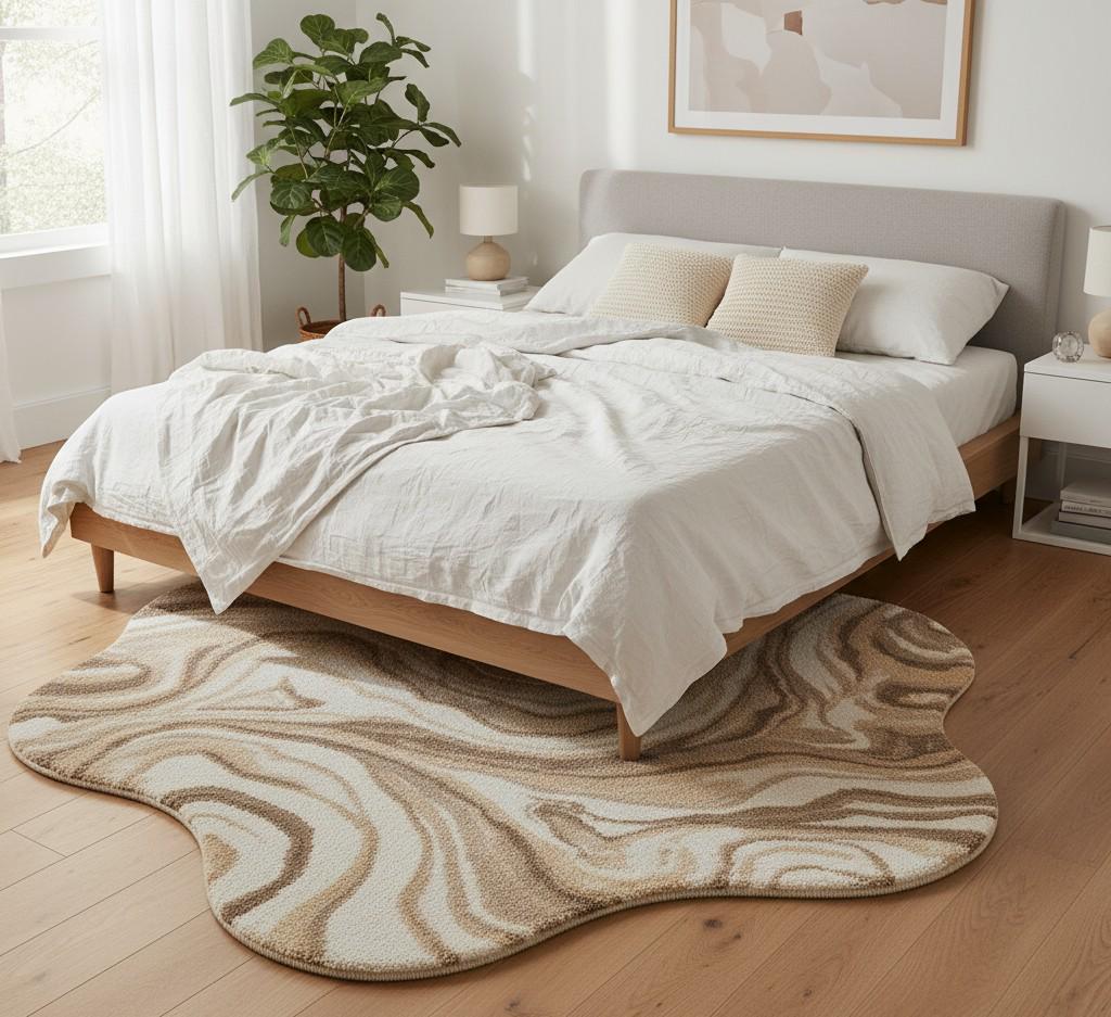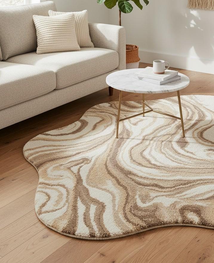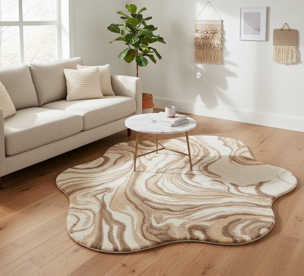 Bring calm, organic beauty to your space with this Beige Wavy Abstract Rug — a perfect blend of modern art and cozy comfort. The freeform wavy shape and marble-inspired beige and cream tones add a unique, soft flow to any room.