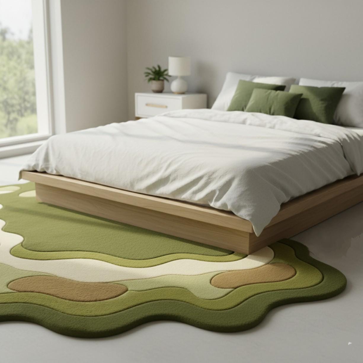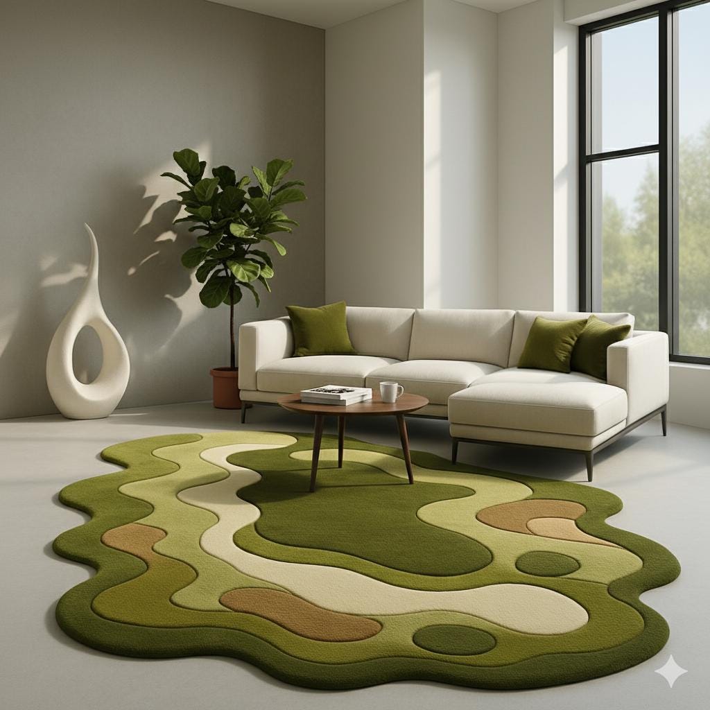 Elevate your space with this premium hand-tufted green wavy wool rug, crafted from luxurious New Zealand wool for a soft, durable, and naturally warm feel. The flowing abstract wave design in calming green makes this rug a statement piece for both living rooms and bedrooms.