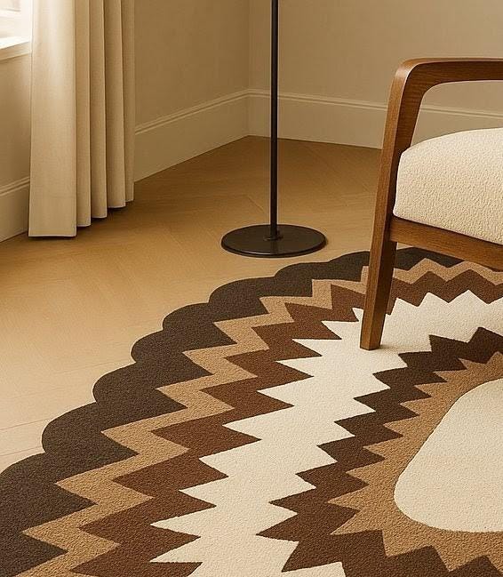 Handmade with care, each rug is a unique piece — the rich brown zigzag pattern adds a modern flair, while the luxurious wool texture ensures comfort and durability. A perfect blend of art and functionality for your space.