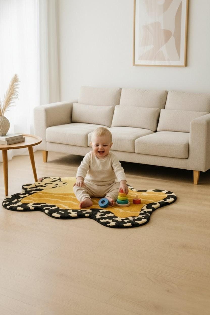 🔑 SEO Keywords: playful wool rug, abstract wool carpet, New Zealand wool rug, 100% wool area rug, hand-tufted design rug, modern kids/ living room rug