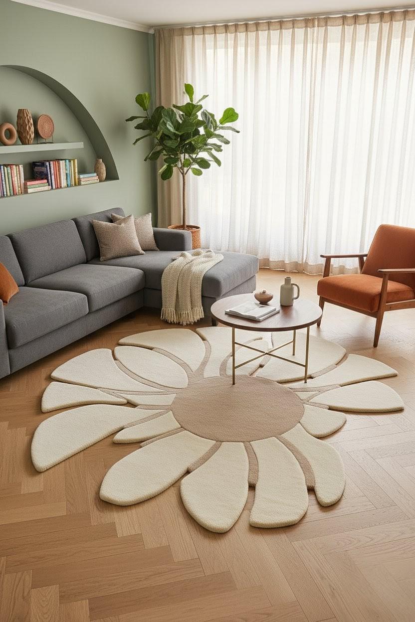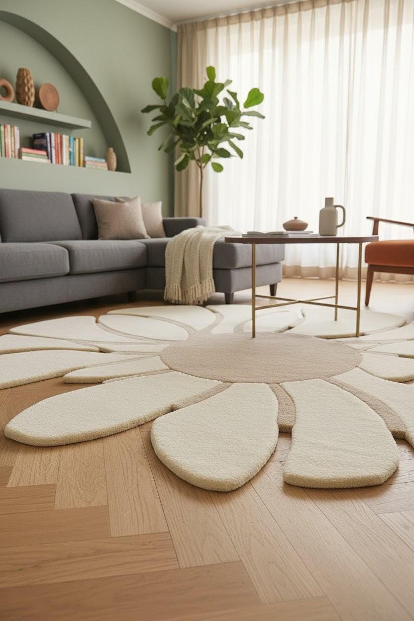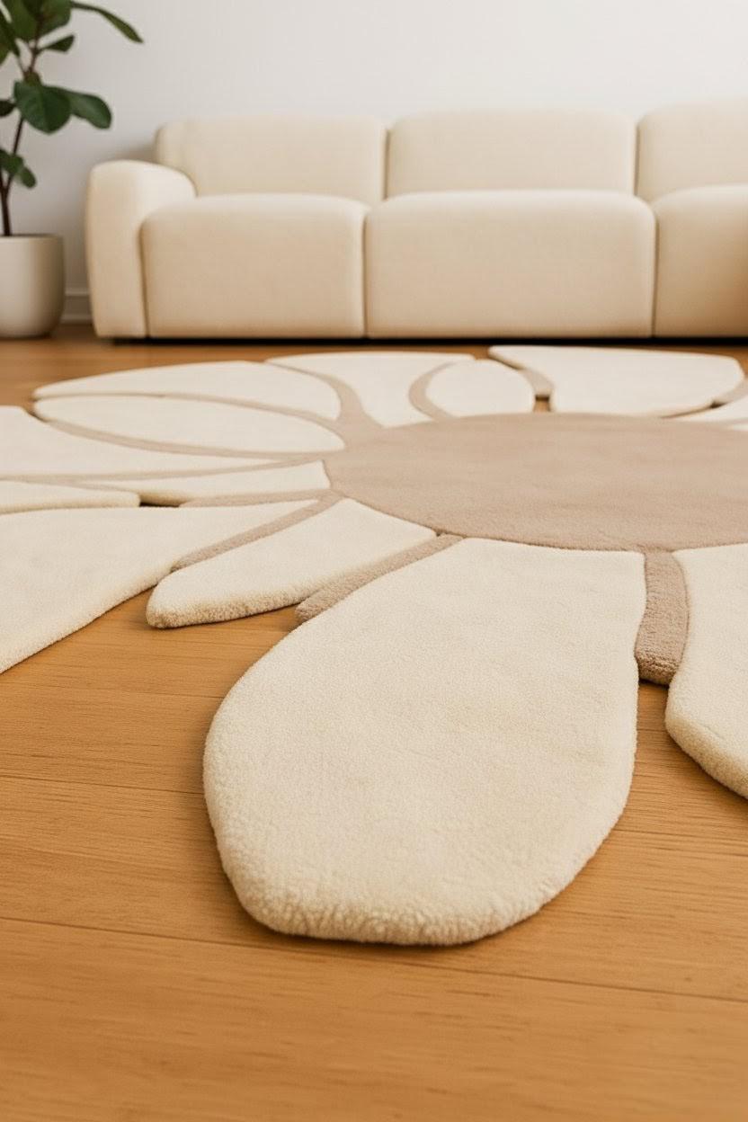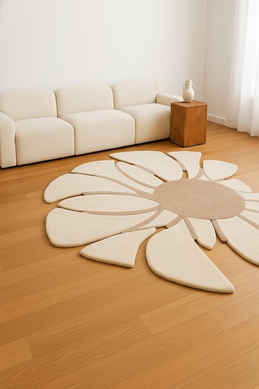 🔑 SEO Keywords: daisy flower rug, handmade wool floral carpet, modern flower area rug, hand tufted daisy design, custom size wool rug, luxury wool decor