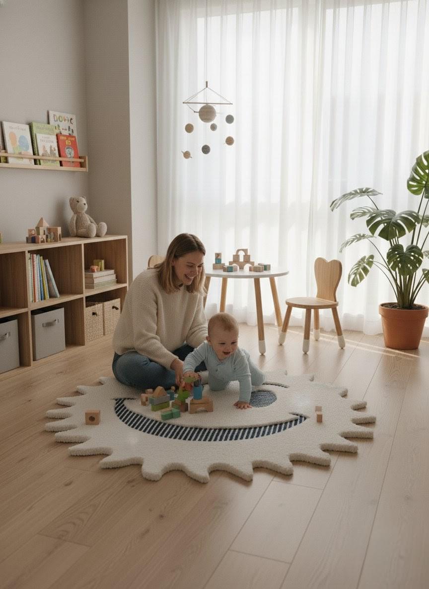 Hand-Tufted Organic Wool Smiley Face Rug – Playful Kids Decor