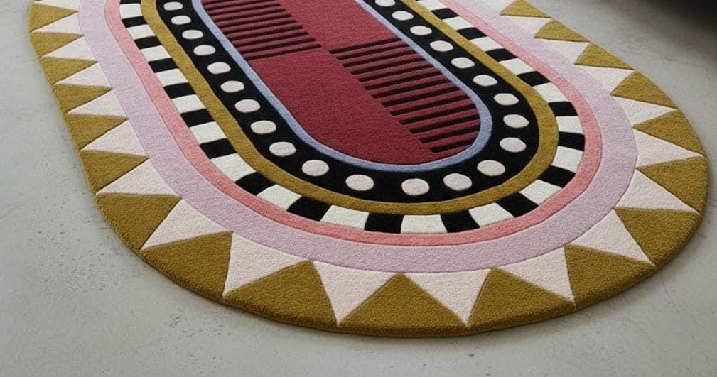 Geometric Oval Wool Rug, Modern Abstract Design, Hand-Tufted