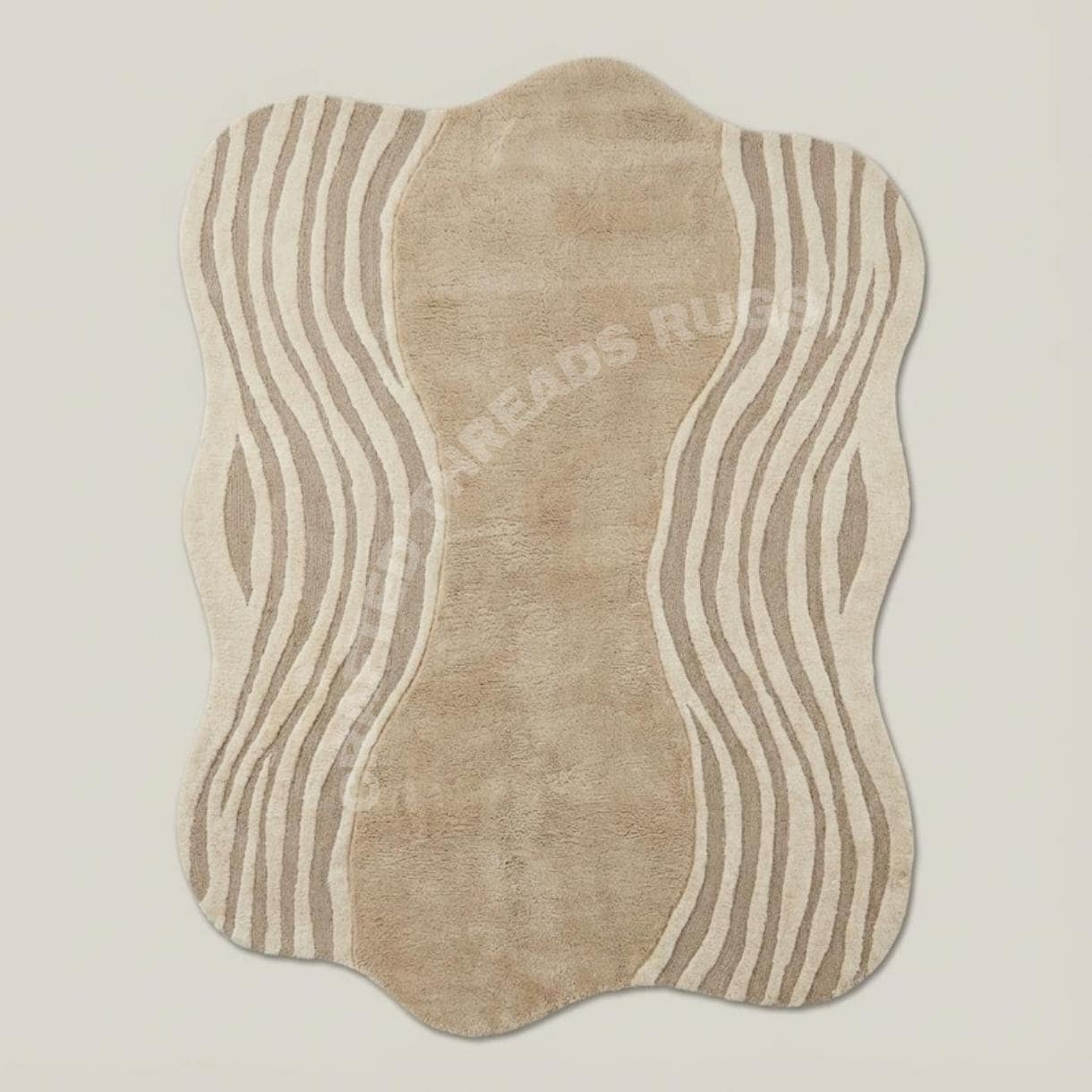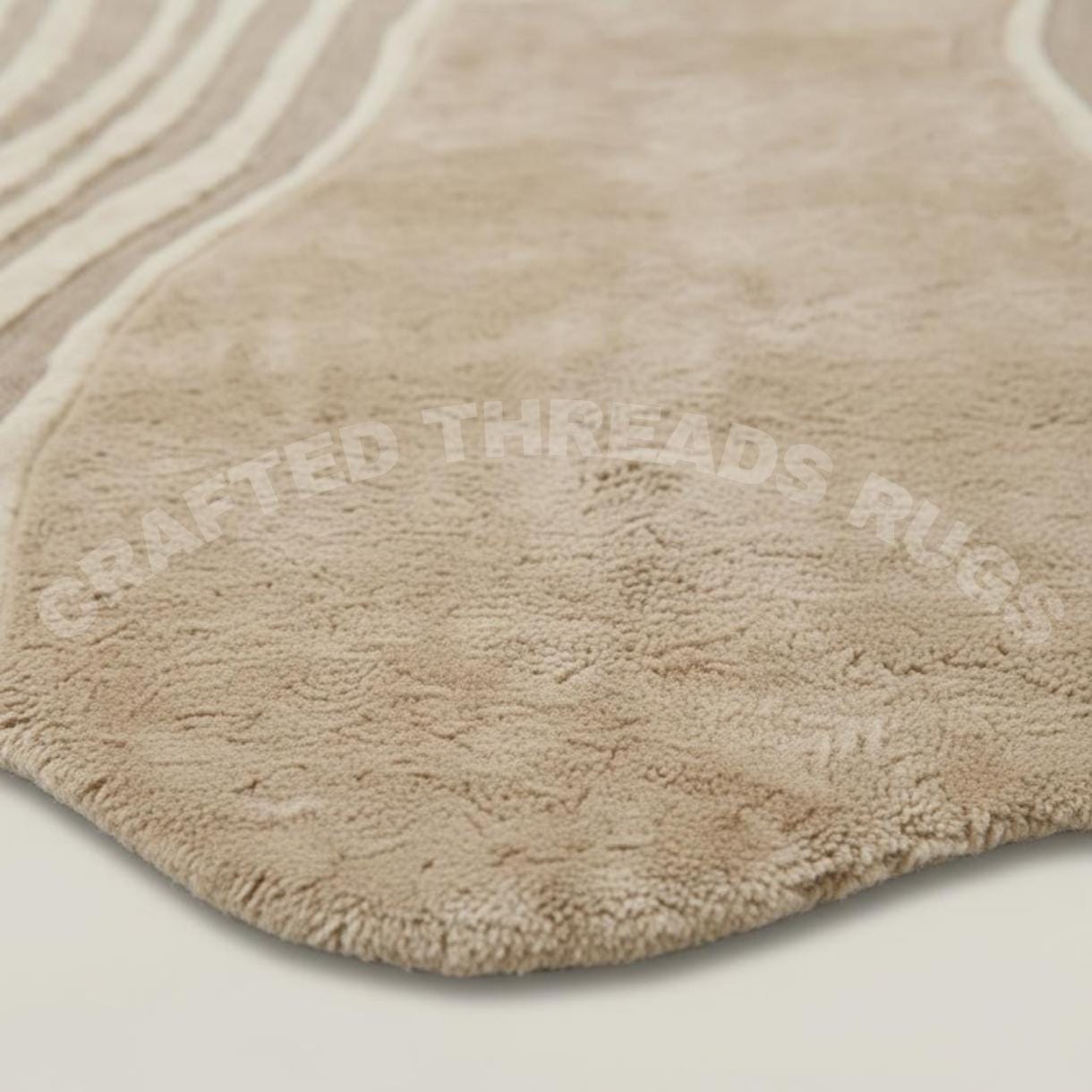 Elevate your space with this luxury organic-shaped wool rug, designed for modern and elegant interiors. Featuring a soft neutral beige base with flowing abstract lines, this rug brings a calm, sophisticated aesthetic to living rooms, bedrooms, and designer spaces.
