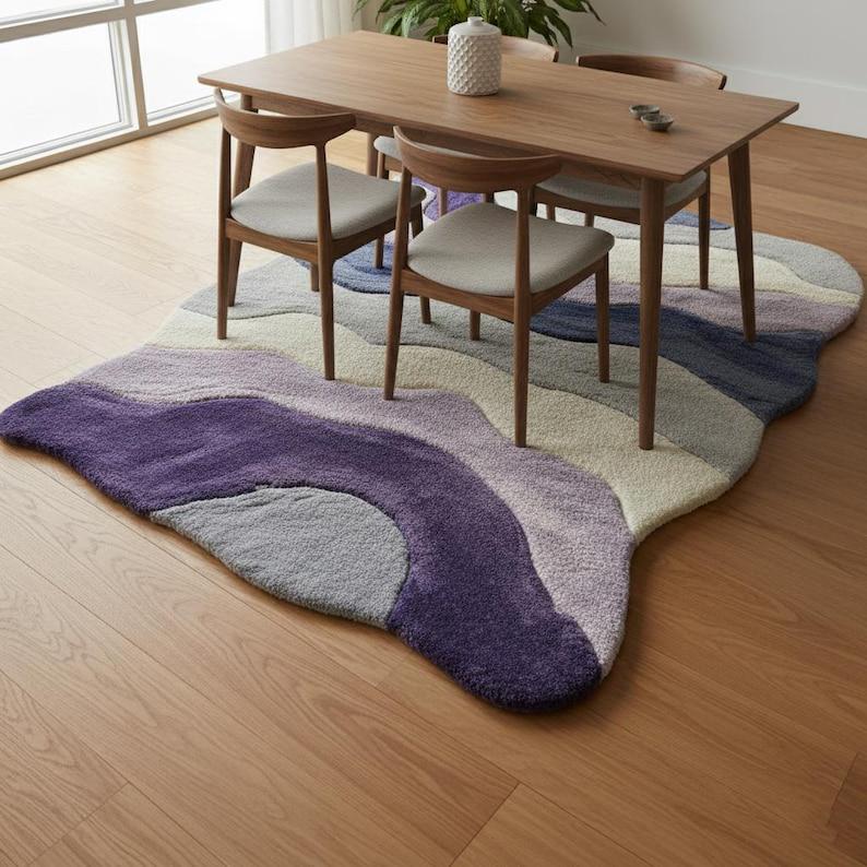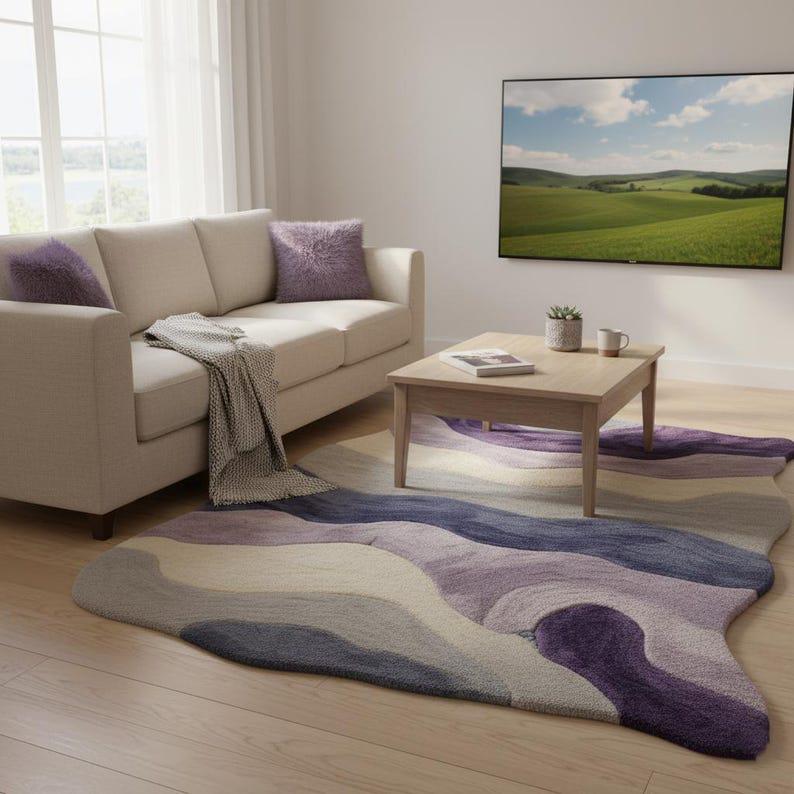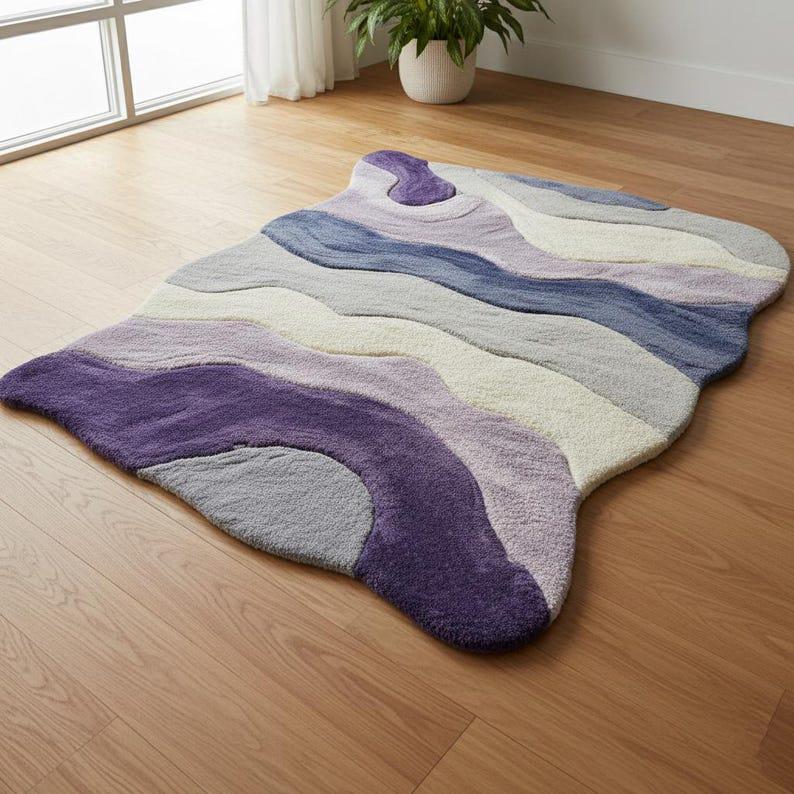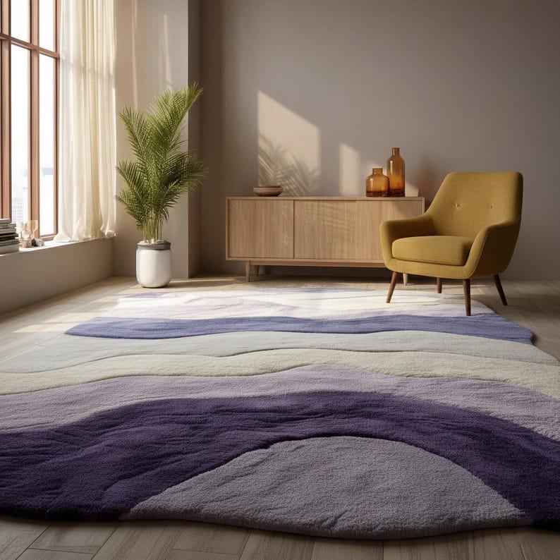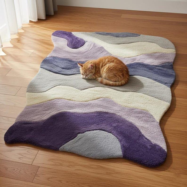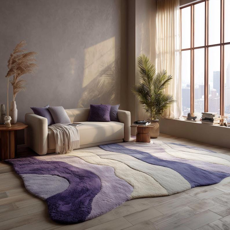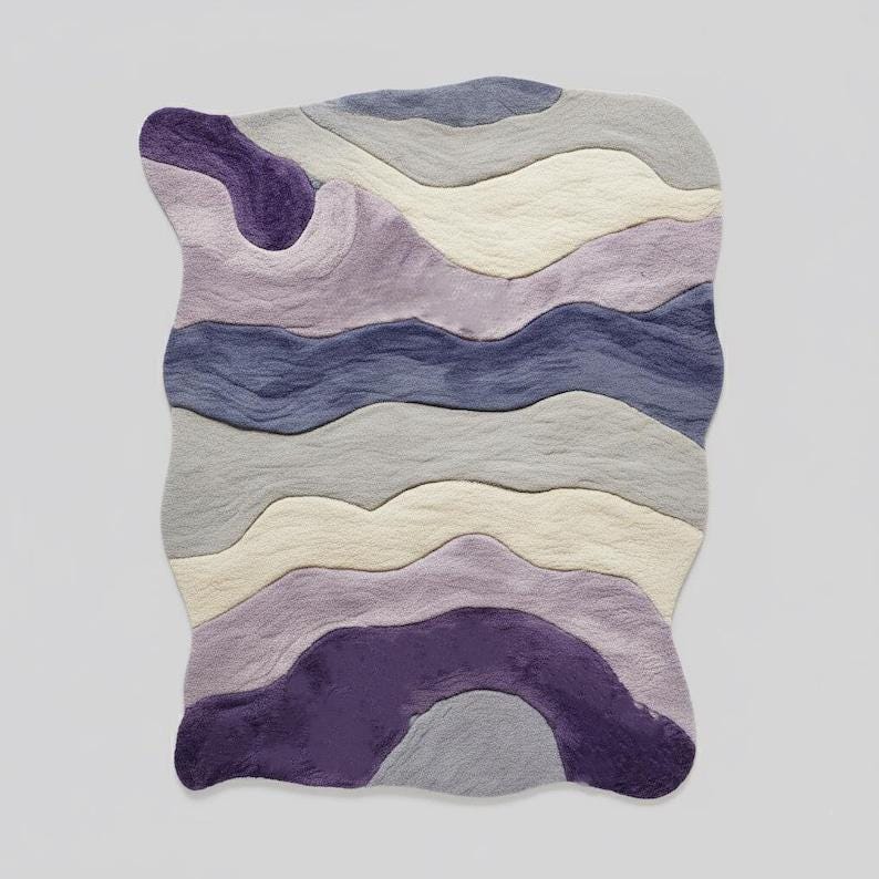 This Wavy Hand Tufted Wool Rug is designed to instantly elevate your space with a soft, artistic, and modern look. Inspired by Scandinavian and contemporary European interiors, organic shape rugs like this are currently among the top-performing designs on Etsy.