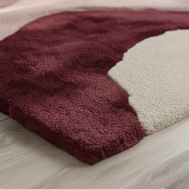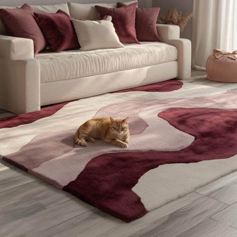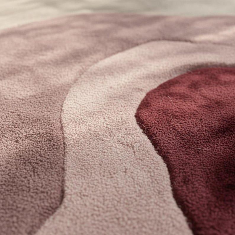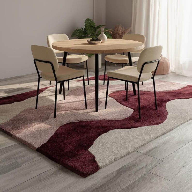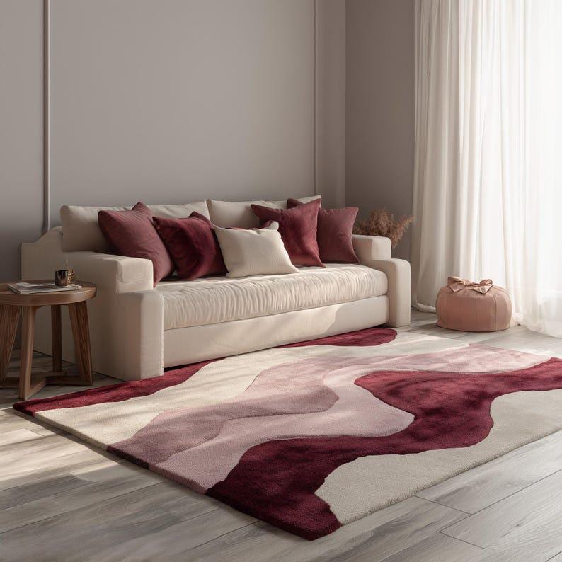 Hand Tufted Abstract Wool Rug, Modern Pink Burgundy Area Rug for Living Room, Luxury Designer Carpet Home Decor