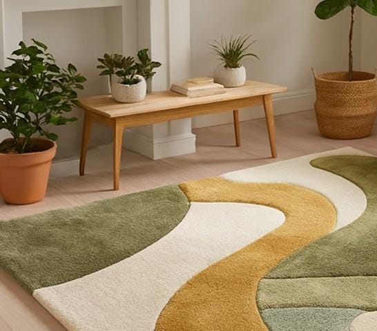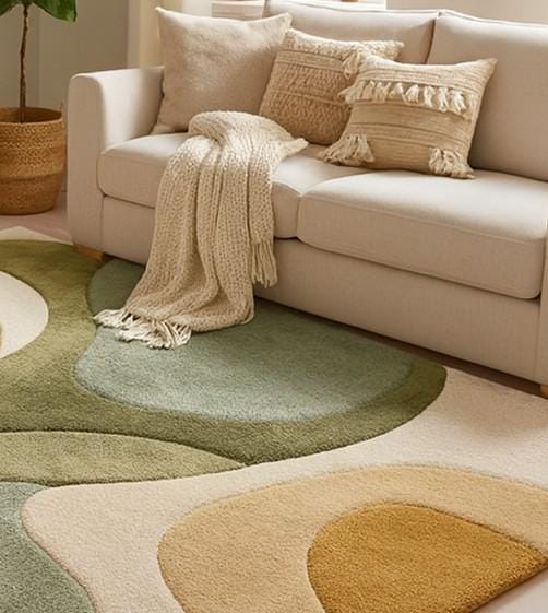 Bring warmth, elegance, and modern artistry to your home with this Abstract Green & Beige Hand Tufted Wool Rug. Designed with flowing organic shapes and soothing earthy tones, this rug blends perfectly with modern, boho, Scandinavian, and contemporary interiors.
