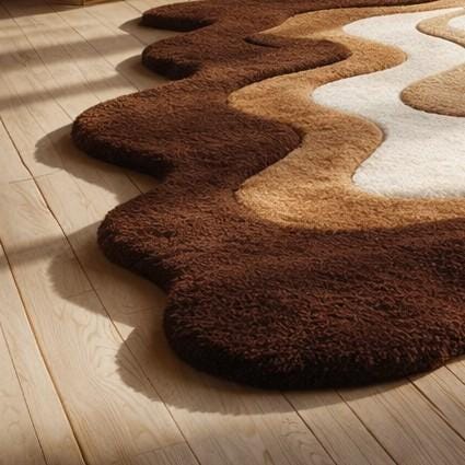 đHand Tufted Wavy Rug, Brown Beige Abstract Area Rug, High Low Textured Wool Carpet, Modern Living Room Floor Rugđ