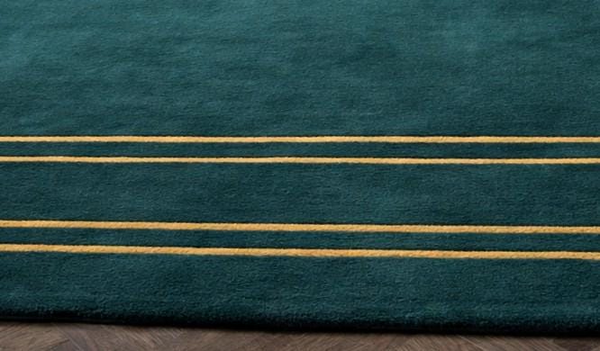 Hand Tufted Geometric Area Rug, Teal Green Modern Rug with Gold Line Design, Luxury Wool Carpet for Living Room