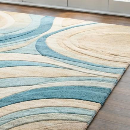 Bring calm coastal luxury to your space with this handâtufted wool rug, featuring elegant wavy lines in soothing blue and cream tones. Perfect for living rooms, bedrooms, and modern interiors, this plush textured rug adds warmth, style, and premium comfort.