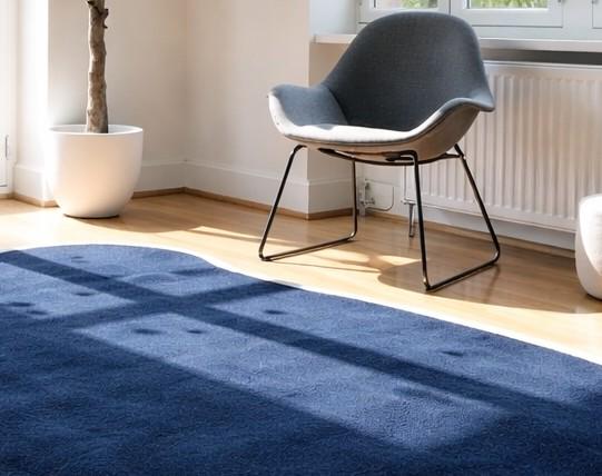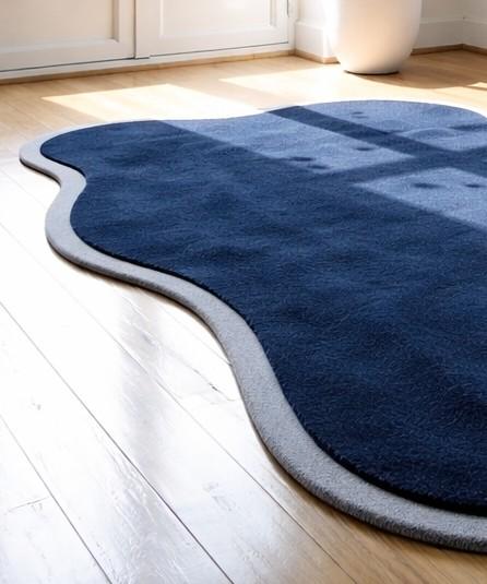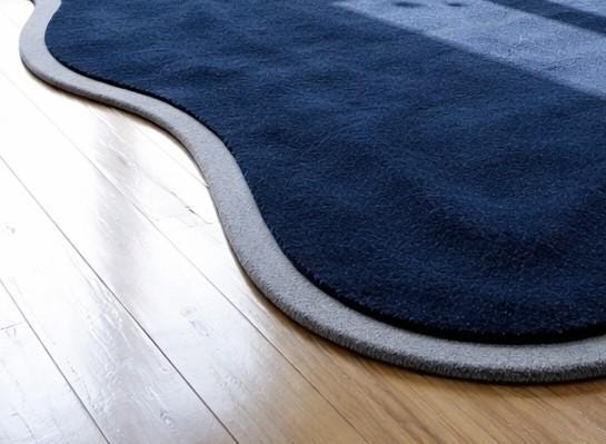 Add a bold modern statement to your space with this hand tufted wool rug, crafted in a unique organic shape with rich navy blue tones and a soft contrasting border.