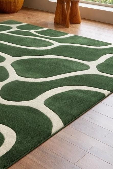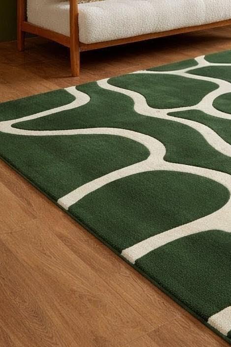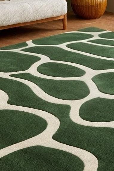 đGreen Abstract Organic Rug, Modern Hand Tufted Wool Area Rug, Scandinavian Minimal Carpet, Living Room Bedroom Decorđ
