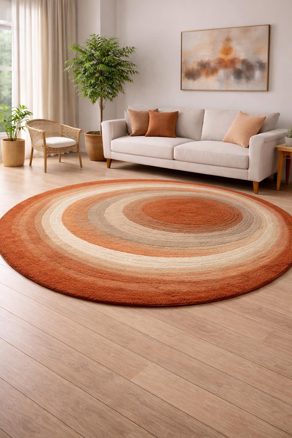 ✨Round Rust Beige Area Rug – Hand Tufted Wool Circle Rug, Modern Minimal Boho Carpet, Living Room Bedroom Decor✨
