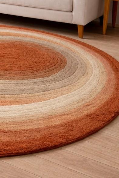 Add warmth and modern elegance to your space with this round rust beige hand-tufted wool rug. Designed with soft concentric circles and neutral earthy tones, this rug blends perfectly with modern, boho, and minimalist interiors.
