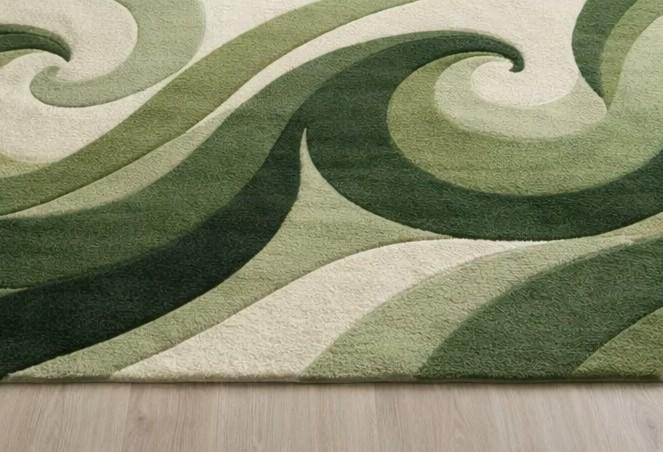 đGreen Abstract Wave Rug â Hand Tufted Wool Area Rug, Modern Swirl Pattern Carpet, Organic Living Room Decorđ