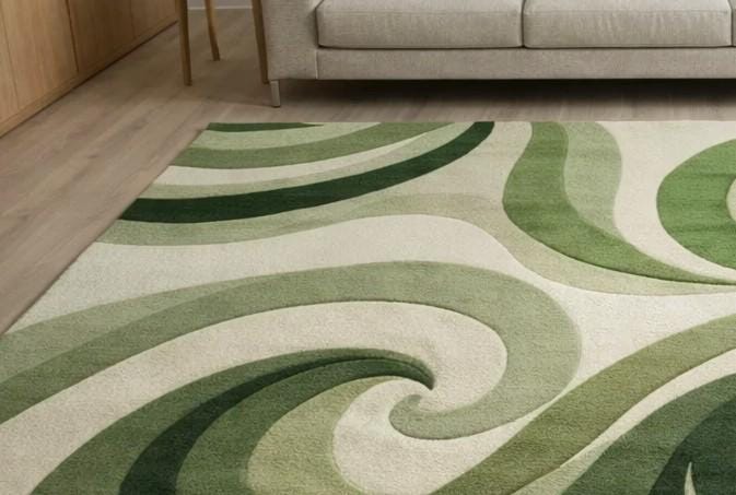 Bring movement and calm into your space with this green abstract wave rug, featuring flowing swirl patterns inspired by nature. Hand tufted from premium wool, this rug offers a plush texture, rich depth, and a modern organic look that elevates any interior.