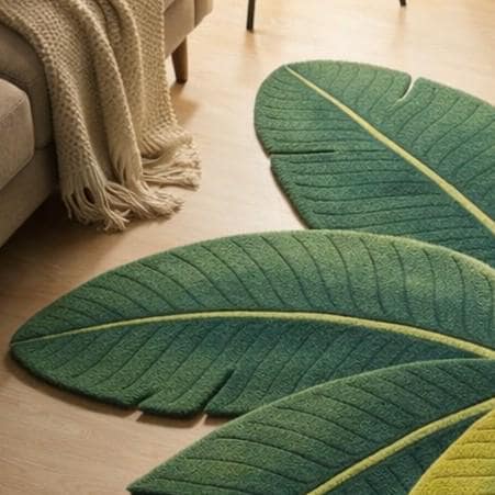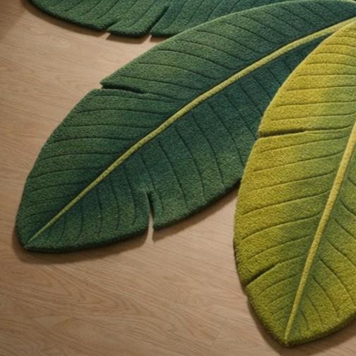 Make a bold statement with this hand tufted banana leaf rug, inspired by tropical nature and crafted for modern homes. Designed in a realistic leaf shape with rich green tones, this rug instantly becomes the focal point of any living room, bedroom, or creative space.