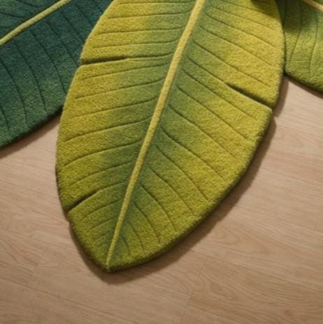 Banana Leaf Shape Rug, Hand Tufted Green Wool Carpet, Tropical Leaf Area Rug, Unique Living Room Floor Rug