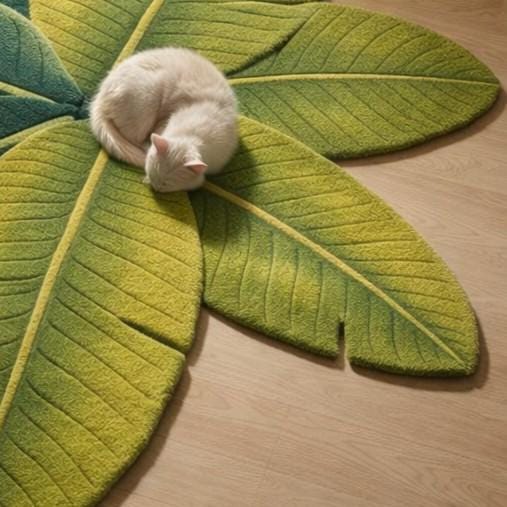 Handmade using premium wool, the rug features a soft, plush pile with detailed leaf veins and natural texture, offering both comfort and durability.