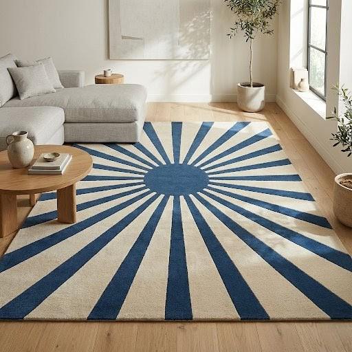 A modern ray design in blue and ivory that instantly transforms living rooms, studios, and designer interiors.