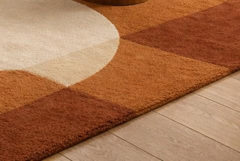 Bring warmth and modern elegance to your space with this hand tufted abstract wool rug in rich terracotta and rust tones.