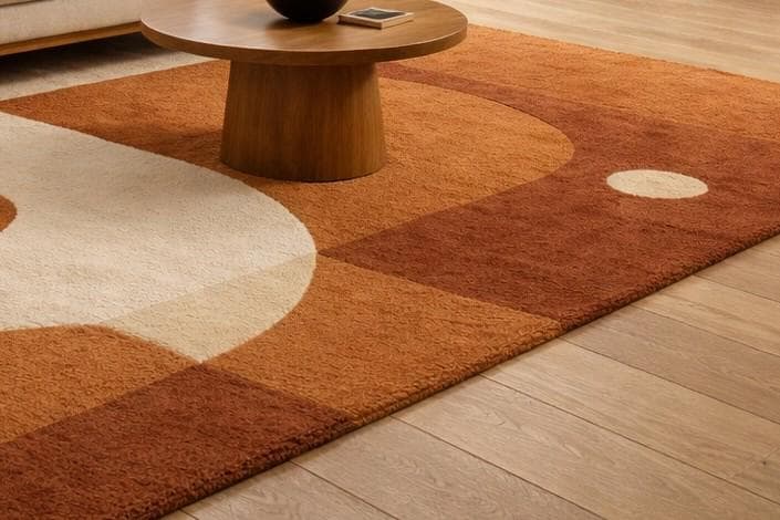 Modern Abstract Hand Tufted Wool Rug | Terracotta Rust Area Rug | Minimal Geometric Carpet for Living Room Bedroom | Handmade Wool Rug