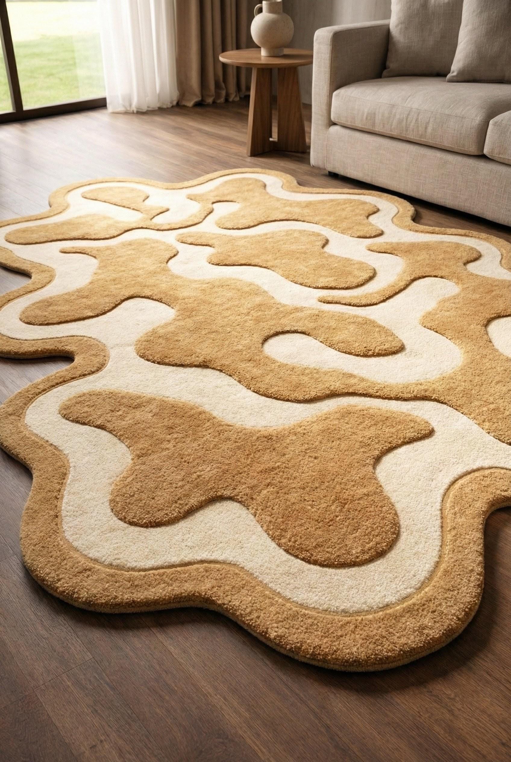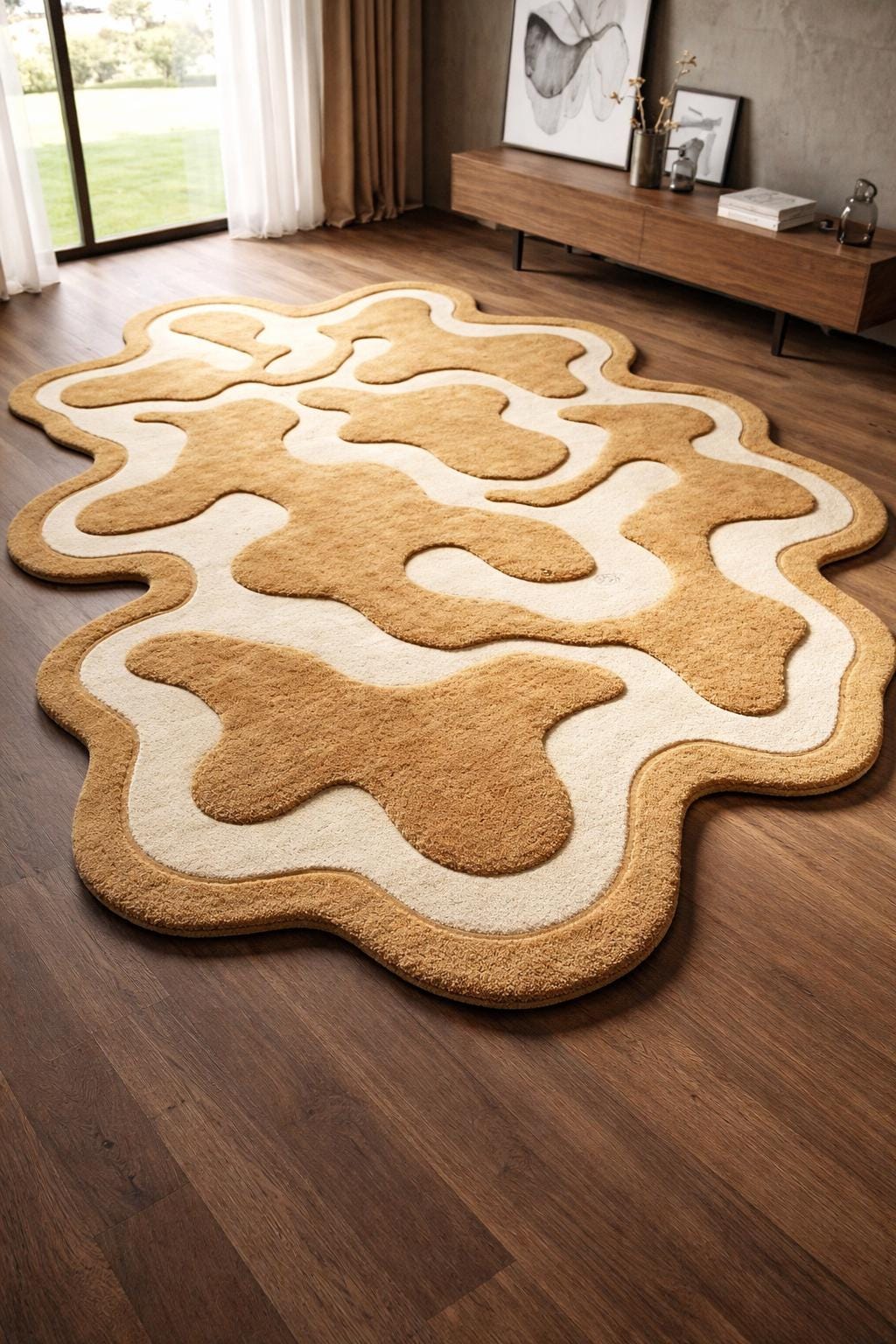 ✨Organic Abstract Hand Tufted Wool Rug, Modern Neutral Area Rug for Living Room, Wavy Shape Plush Carpet✨