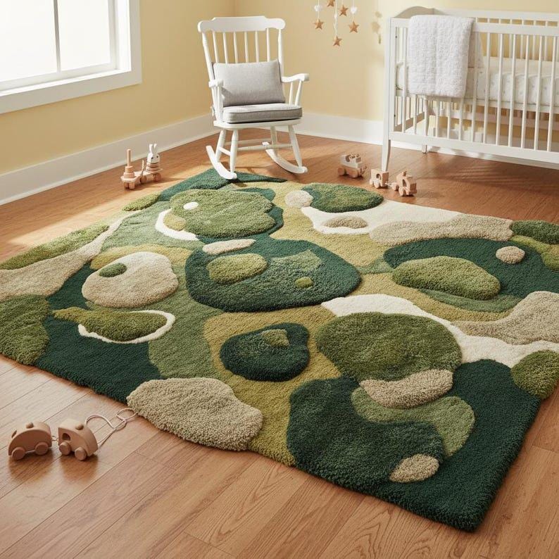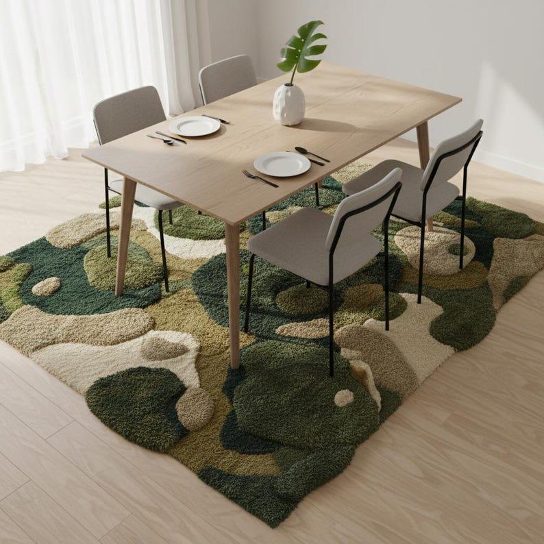 Hand Tufted Wool Rug Green Abstract Area Rug 8x10 Organic Modern Living Room Luxury Handmade Carpet
