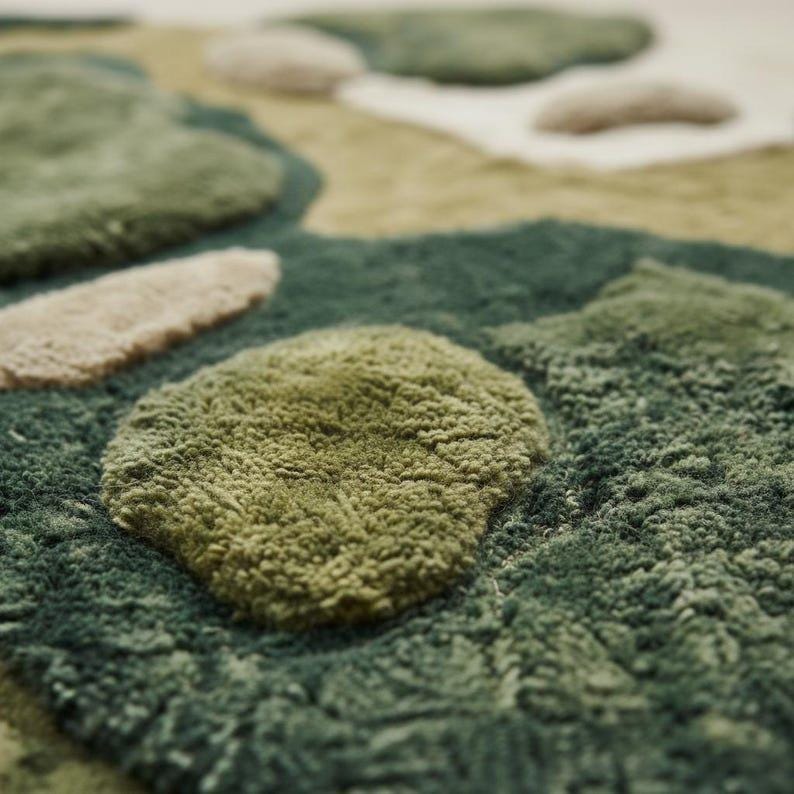 Luxury hand tufted wool rug with organic abstract design inspired by nature. Made with premium wool, featuring sculpted high-low pile for a soft plush feel. Perfect statement area rug for living room, bedroom or modern interiors. Handmade with high quality finish. Custom sizes and colors available.