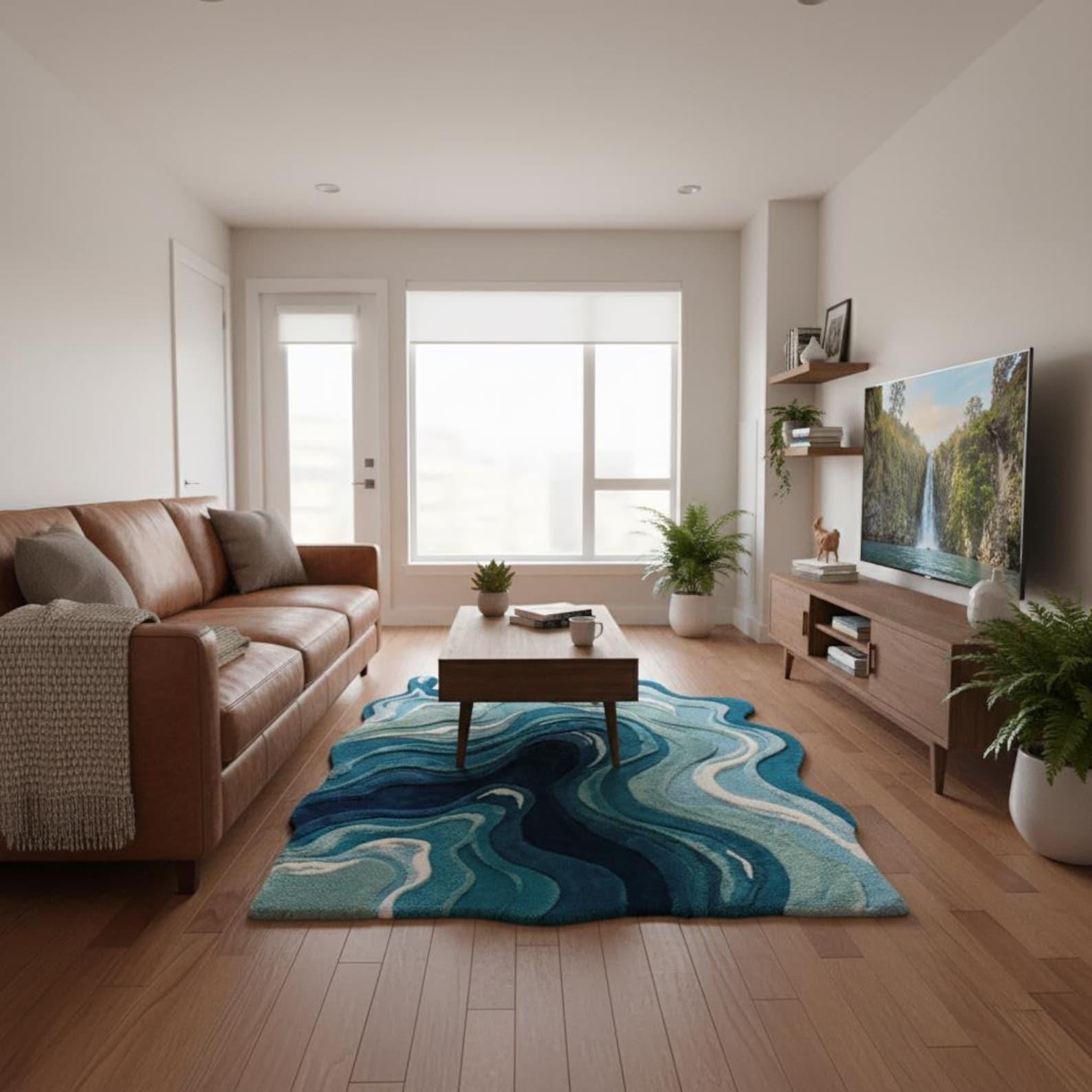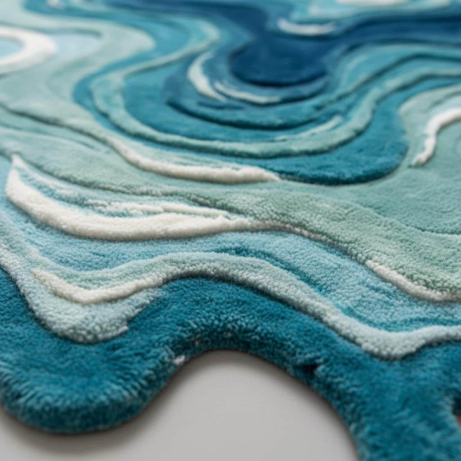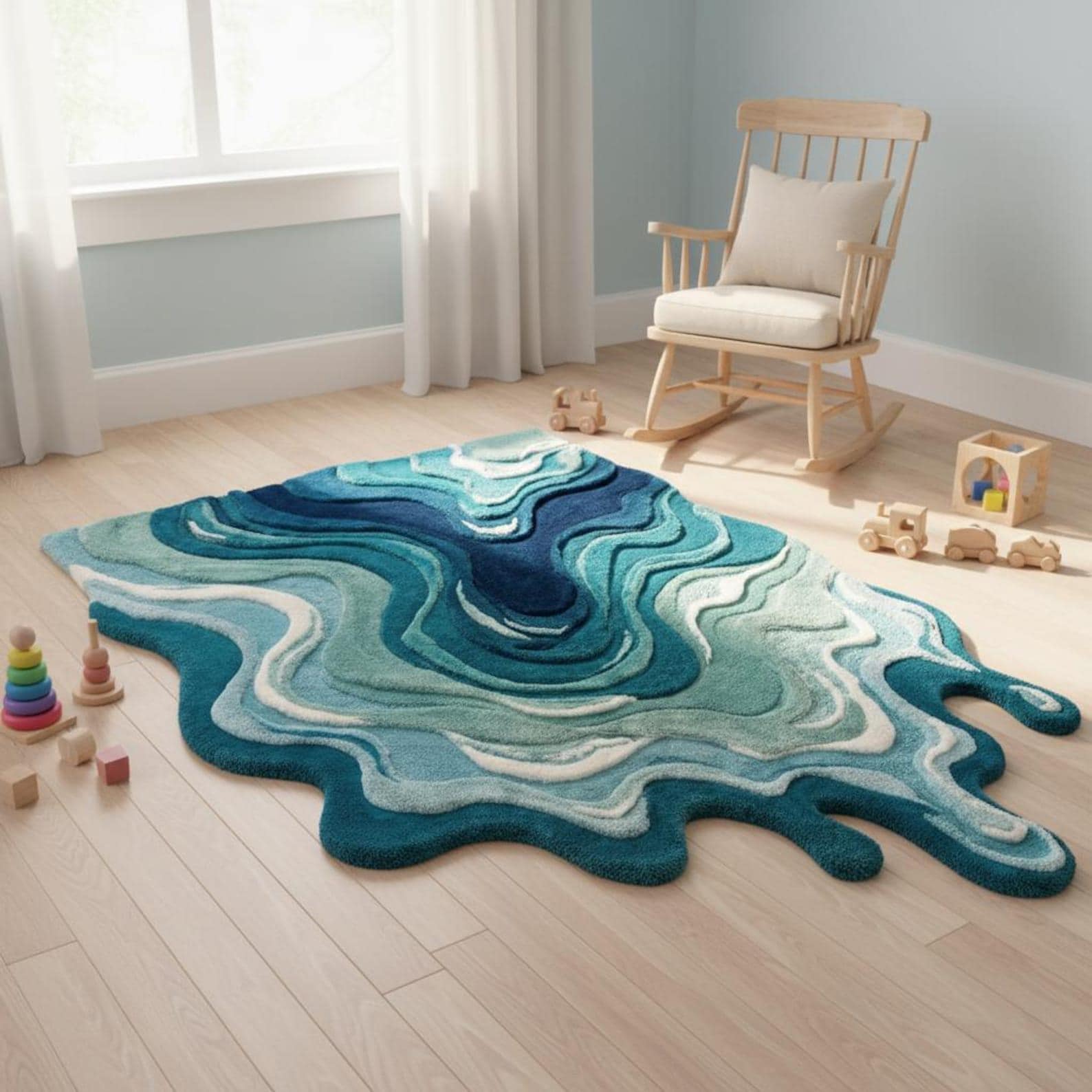 Hand tufted ocean wave rug designed with sculpted flowing lines and an artistic drip shape. Crafted from premium wool with layered high and low pile to create depth and movement inspired by water and coastal landscapes. This modern abstract rug works as a statement piece for living rooms, studios, and designer interiors. Soft underfoot, durable, and handmade with precision. Custom sizes, colors, and shapes available on request.