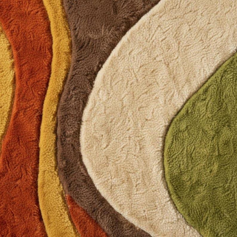 Hand Tufted Abstract Wool Rug | Wavy Shape Modern Area Rug | Earth Tone Living Room Rug | Custom Size Designer Carpet