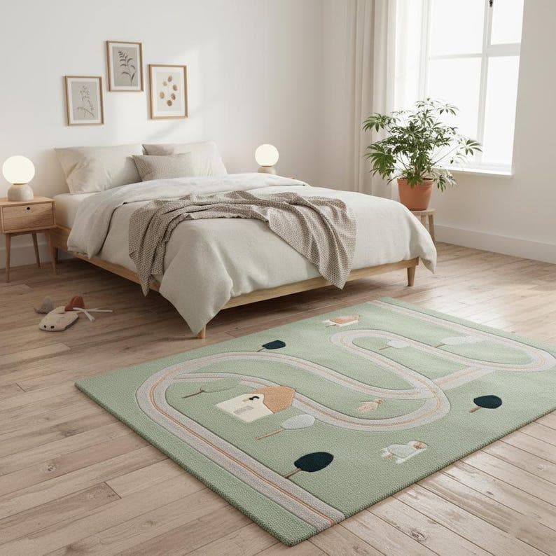 Bring imagination to life with this beautiful hand tufted kids play rug, designed like a charming road map village scene. Perfect for nursery, playroom, bedroom, or living space, this rug turns everyday play into a creative adventure 🚗🏡🌳