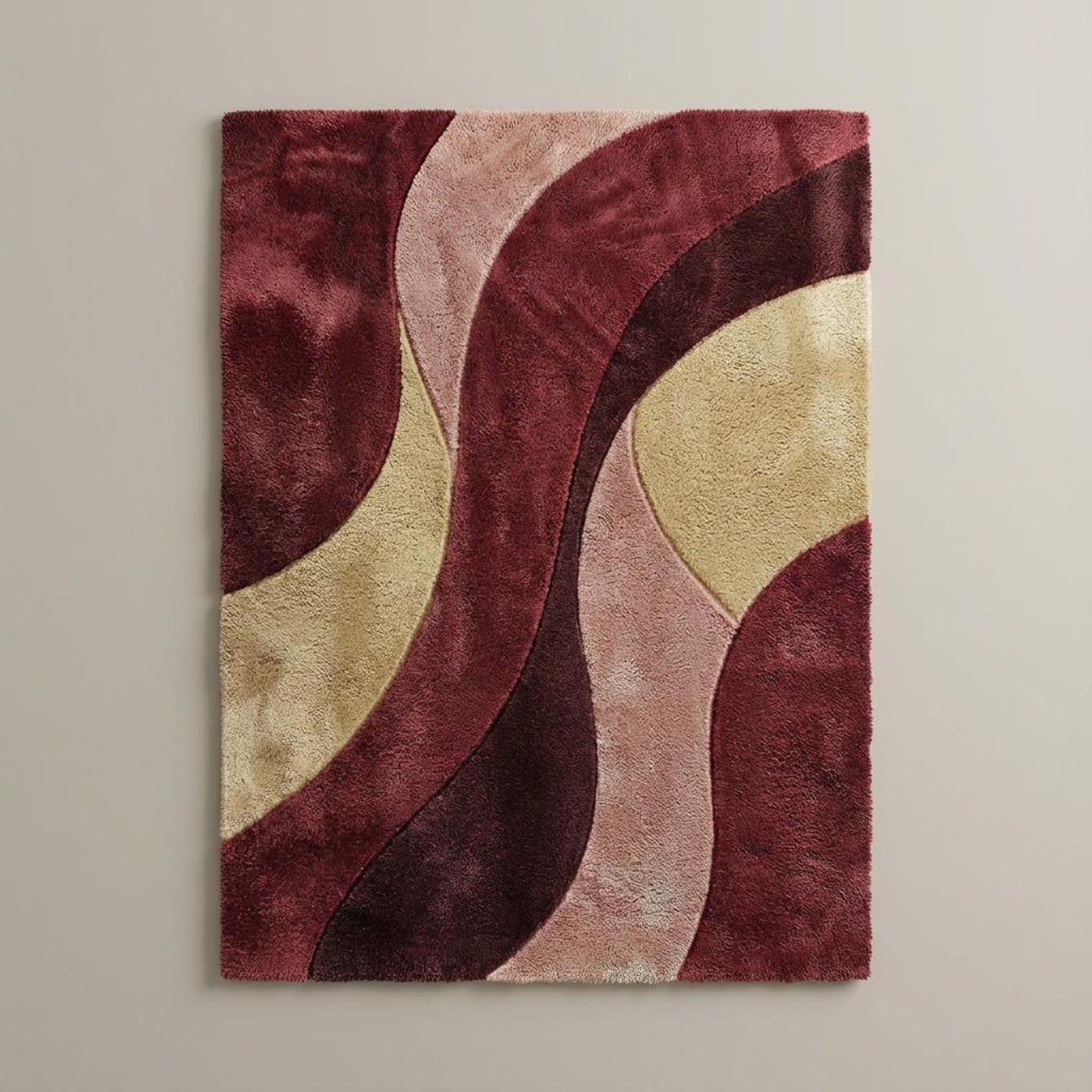 Abstract Wavy Wool Rug | Handmade Tufted | Burgundy Blush Beige | Modern Retro | Custom Size