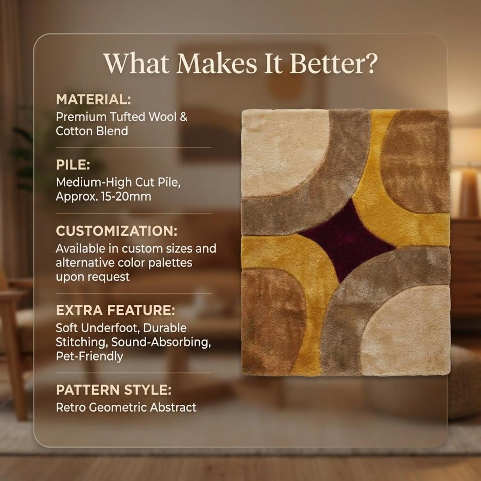 🌟Hand Tufted Wool Rug, Retro Geometric Area Rug for Living Room, Modern Abstract Carpet, Custom Size Handmade Rug🌟