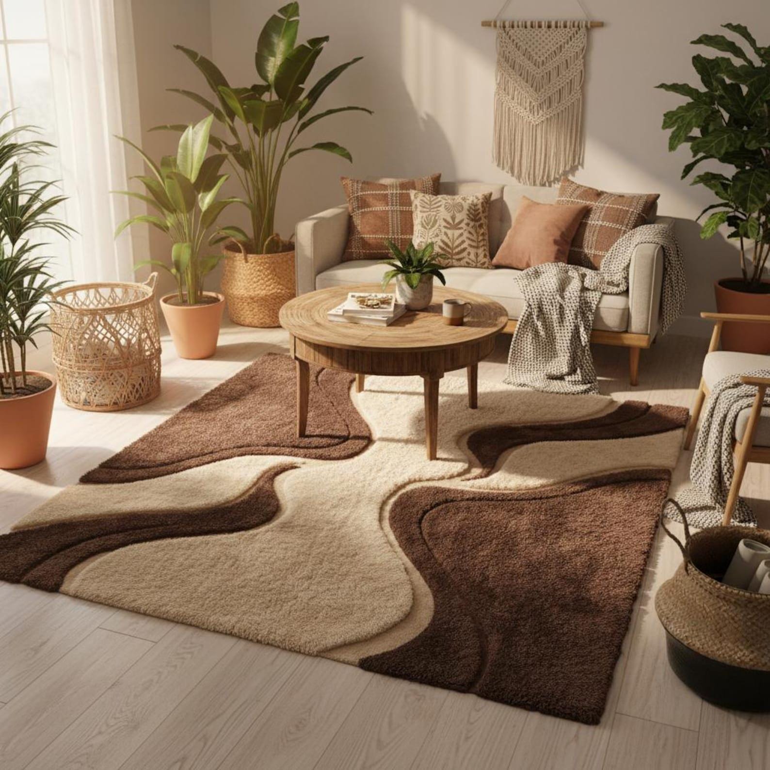Designed in warm neutral brown and beige shades, it blends beautifully with modern, boho, and minimalist interiors.